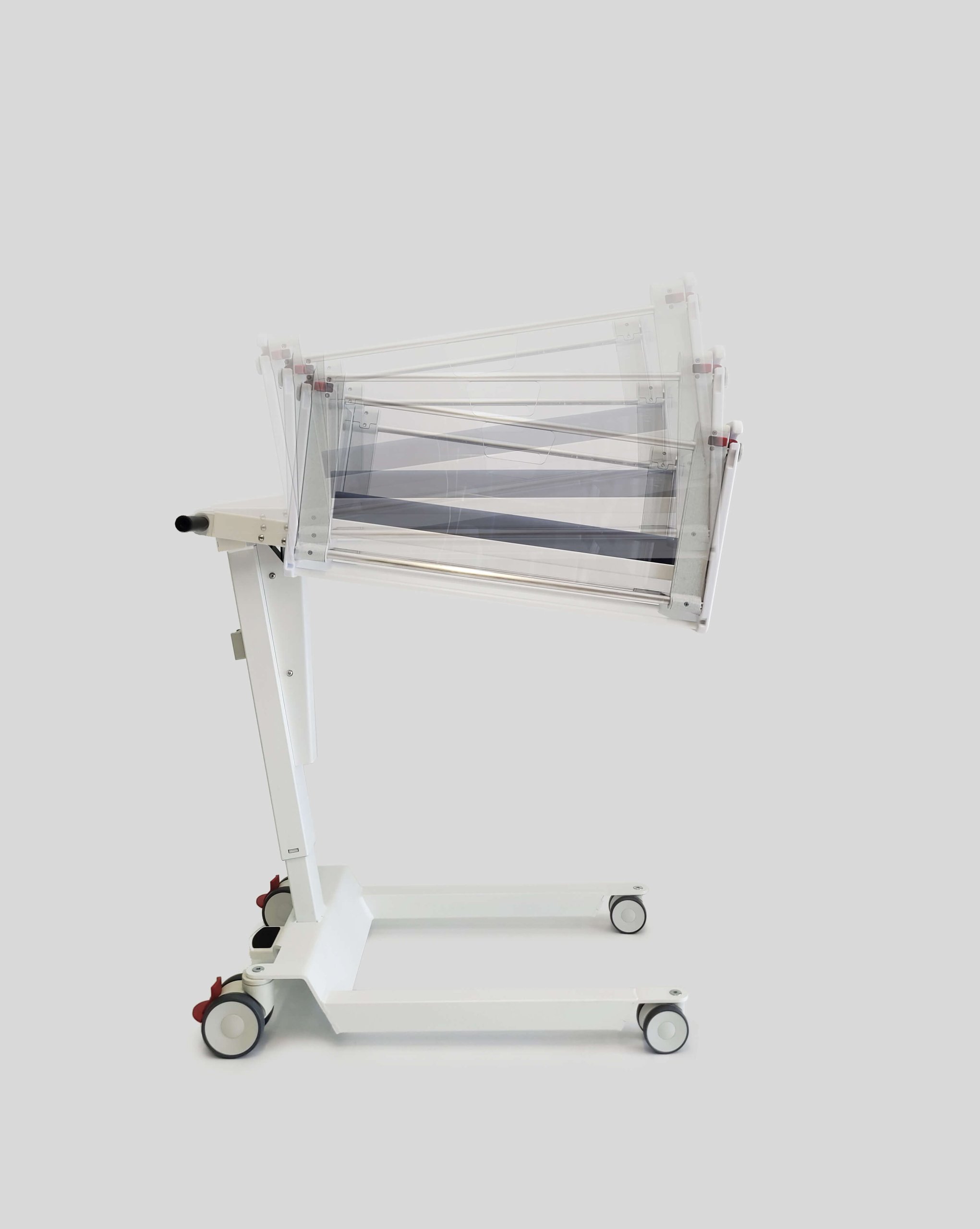 Because both side panels can be fully opened, stability was a crucial design challenge. WeLLDesign optimized the construction and base structure to ensure maximum safety. In combination with braked wheels and a robust frame construction, the crib now meets all requirements for a Class I MDR-certified product (MDR 2017/745).