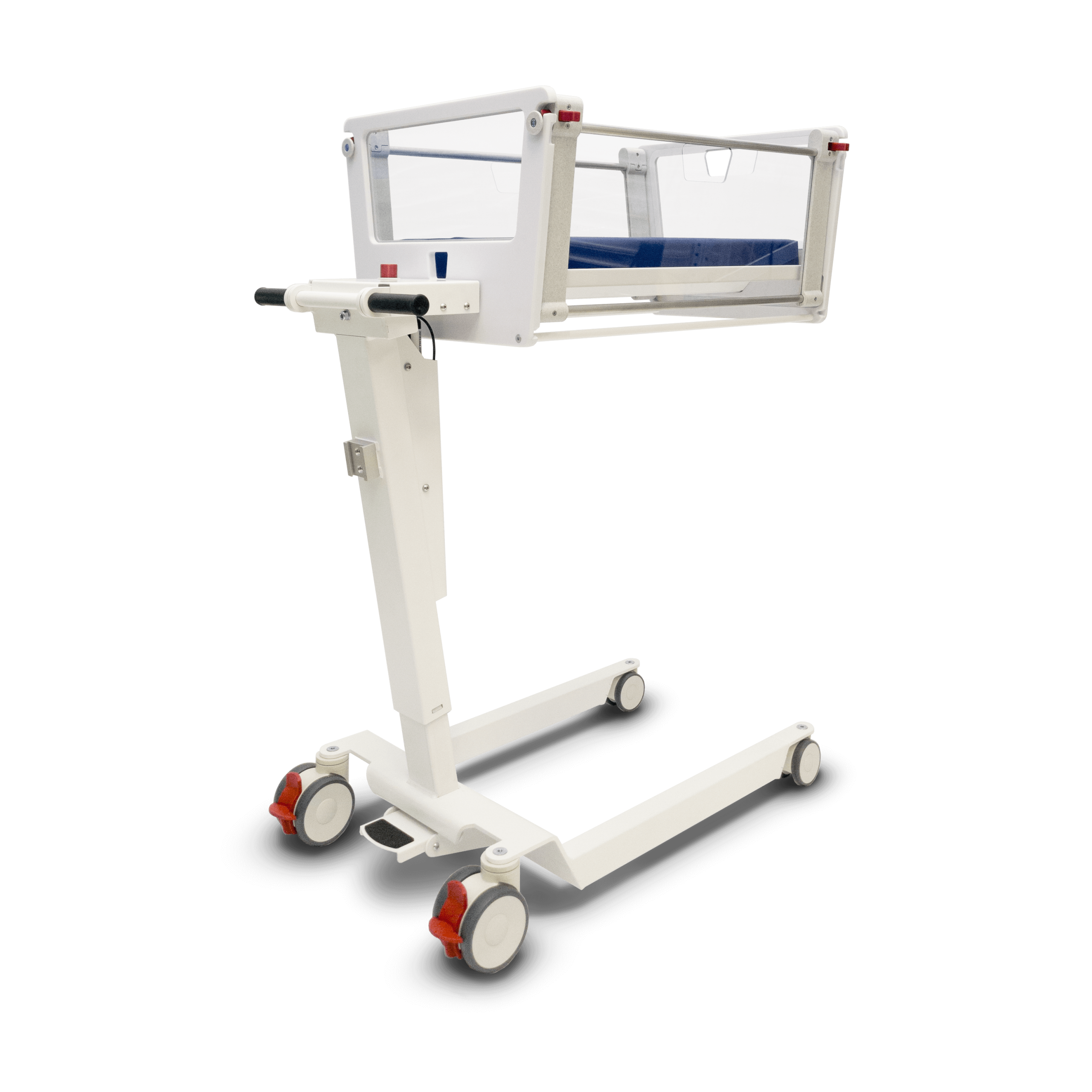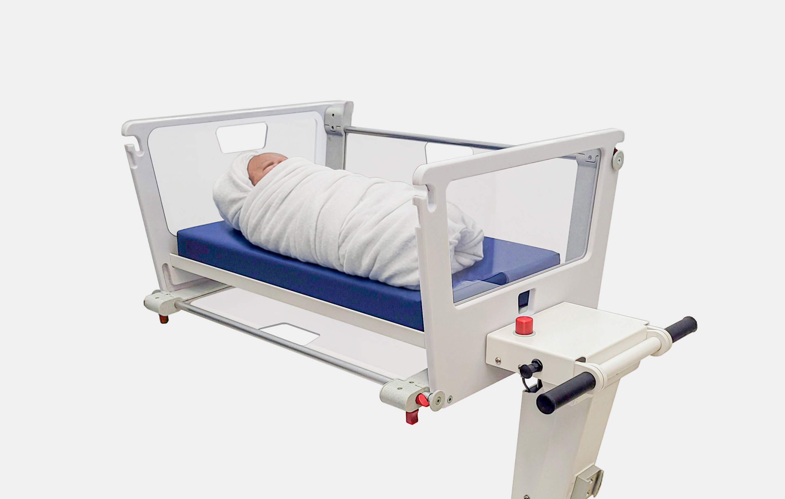 In addition to engineering and functionality, great attention was paid to aesthetics. The existing prototype did not yet visually align sufficiently with the Mobycrib product line. Through the redesign, the crib gained a transparent, calm, and friendly appearance that fits within the series and conveys trust in a clinical environment.